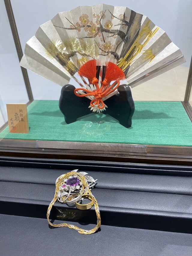 長岡市悠久町にお住まいのリピーター様から【金工作家 大淵武則 号 光則 作 純銀製 扇】【K18 0.09ct メレダイヤ付リング】【Pt刻印 0.31ct ルビー・メレダイヤ付ペンダントトップ】【アクセサリー ジュエリー ネックレス リング メッキブローチ など】をお買取りさせていただきました。