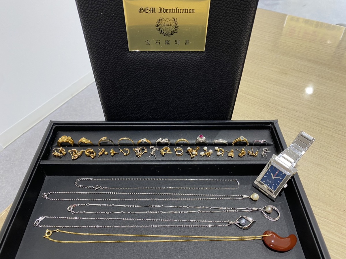 長岡市にお住まいのご夫婦様から【GUCCI 111M クォーツ 腕時計】【鑑別書付 Pt900 0.40/0.31ct ルビー・メレダイヤ付リング】【K18WG 0.13ct メレダイヤ付リング】【K18 メレダイヤ付リング】【アクセサリー 貴金属 地金 メッキなど リング・ピアス・ネックレス 各種】をお買取りさせていただきました。