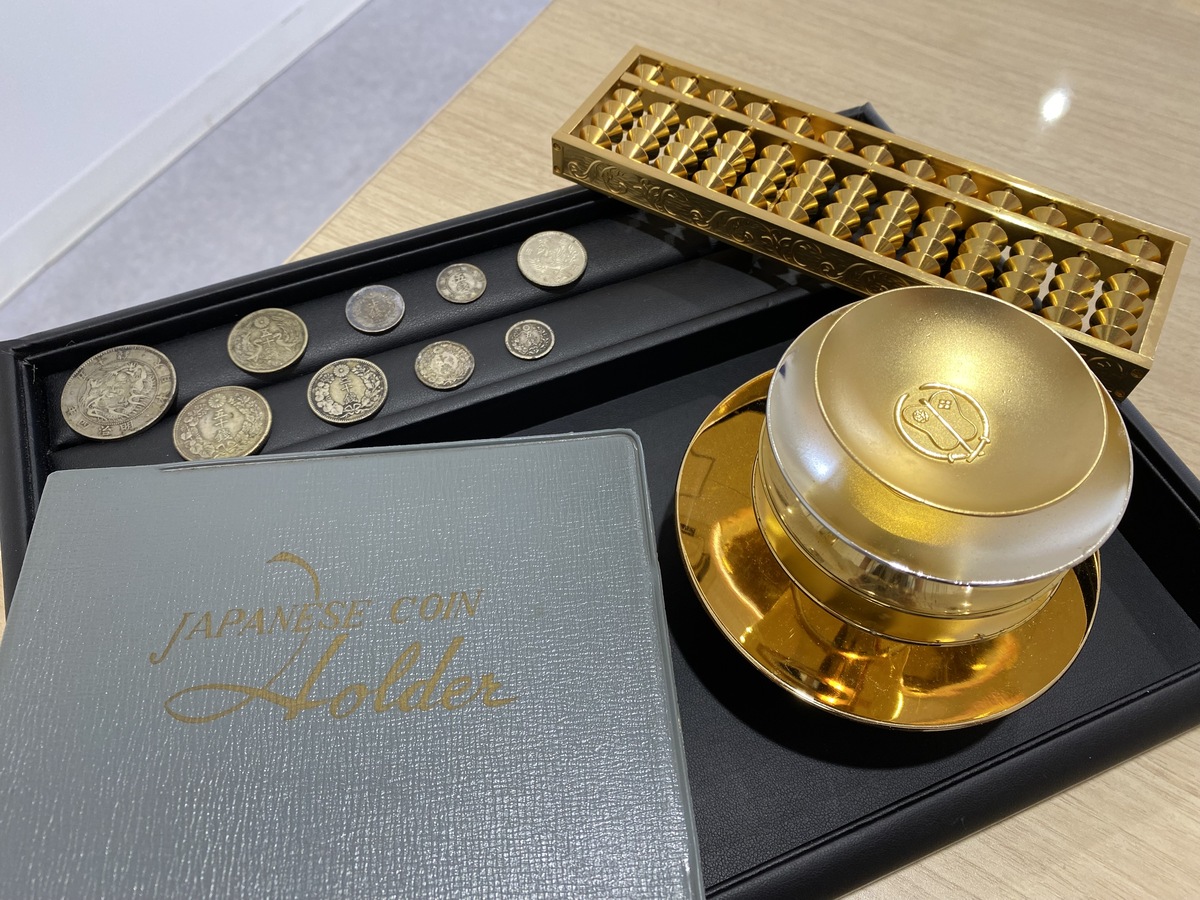 長岡市にお住まいの方から【100円銀貨 鳳凰】【近代銀貨 各種】【古銭 各種】【メッキ 金杯 算盤 各種】をお買取りさせていただきました。