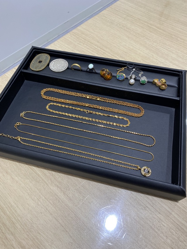 長岡市にお住まいの方から【NINA RICCI ラインストーン ネックレス】【K20 甲丸リング】【K18 750刻印 ネックレス 各種】【14K刻印 ブラックオパール付タイタック】【金歯】【天保通宝】【1964年 東京オリンピック記念 1,000円銀貨】【アクセサリー メッキ イヤリング 石付リング タイタック 各種】をお買取りさせていただきました。