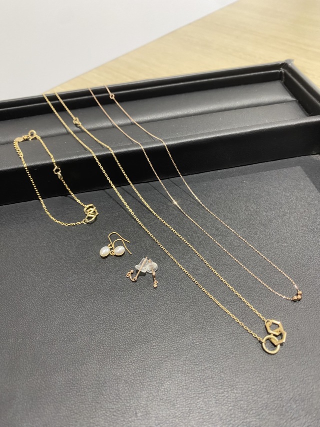 長岡市にお住まいの方から【K10 0.01ct メレダイヤ付ピアス】【K10 パール付ピアス】【K10PG ネックレス】【K10/SV デザインチェーン ネックレス ブレスレット】をお買取りさせていただきました。