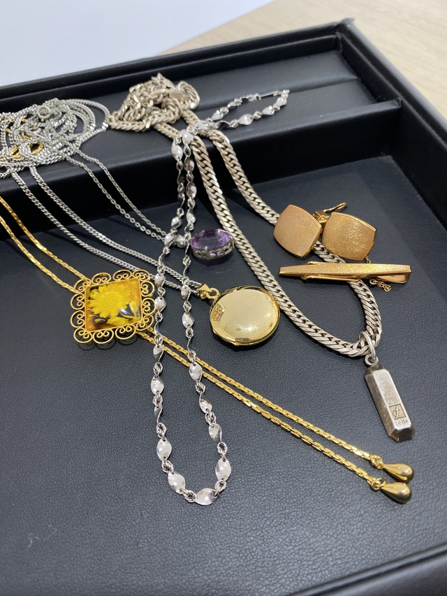 小千谷市にお住まいのご夫婦様から【Pt850 デザインチェーン ネックレス】【Leda 喜平 ネックレス ペンダントトップ】【アクセサリー カフス・タイバーセット メッキ ネックレス・ペンダントトップ 各種】をお買取りさせていただきました。